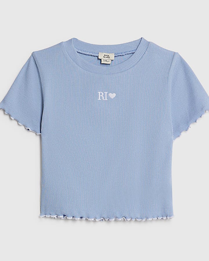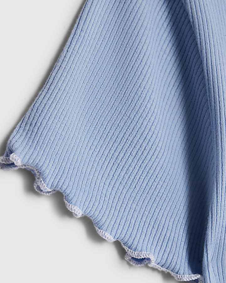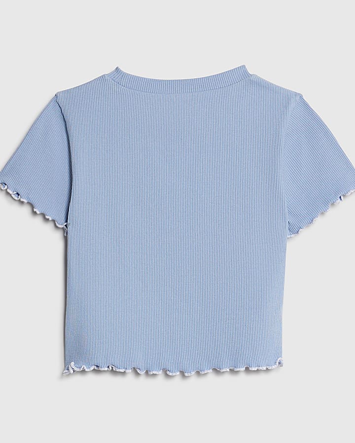 Girls Blue Lettuce Hem RI Top